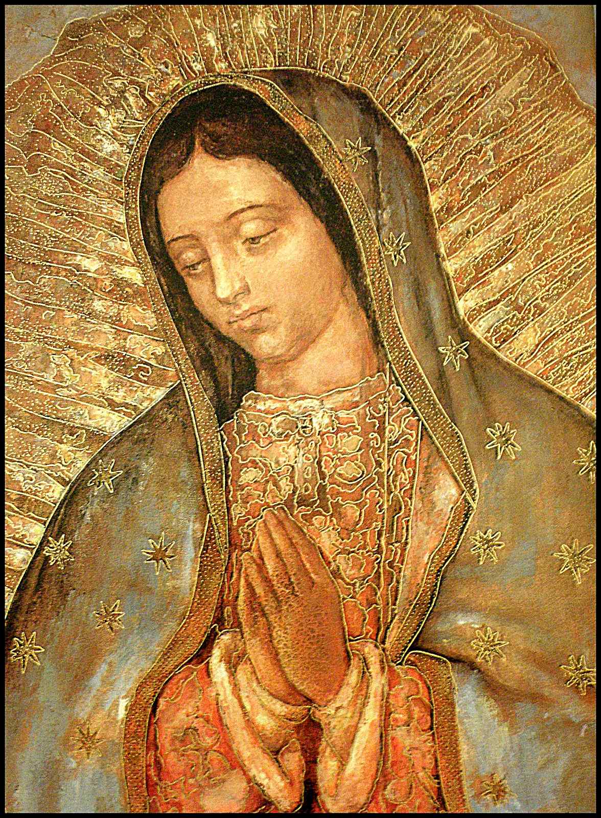 Impressa no tecido do manto, como se tivesse sido pintada por mão divina, estava a imagem de uma Virgem em toda sua glória: